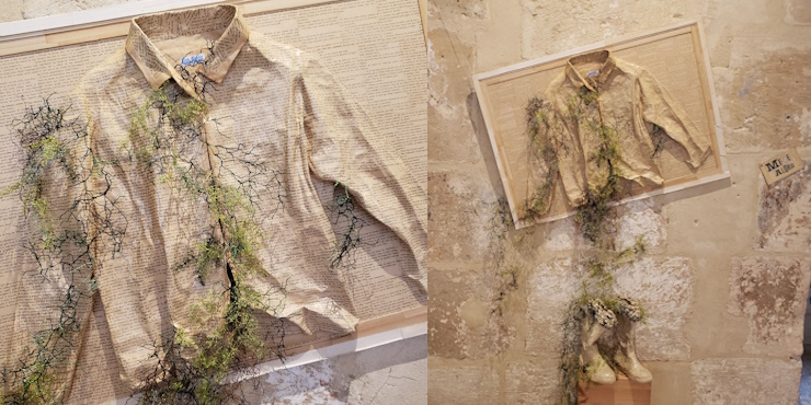 L’élégance et l’audace, 2025LUXE DISCRET, 2025Baskets orange, 2025Une fausse bonne idée, 2025Les compensées à lacets« Merde alors », chemise et bottes rongées par le végétal (Geneviève Mathieu)